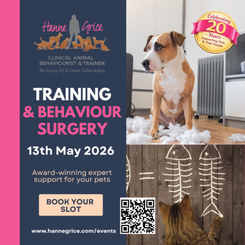 We are holding our annual popular in-person dog and cat training and behaviour surgery on Wednesday, 13th May 2026, at Hastoe Village Hall, near the Natural History Museum in Tring, HP23 6LU.