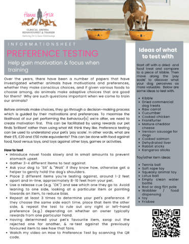 Click here to download the our handout on Preference Testing.